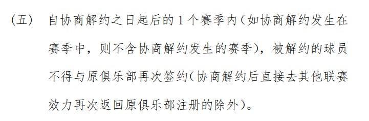 球队和球员协商解约后,双方一年内不得再次签约。